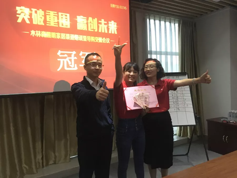 如果工作是戰(zhàn)場,業(yè)績當先;那培訓結果的勝負就是一次戰(zhàn)役的演練。12家專賣店,最終3隊勝出,當他們自信的站上舞臺,自信的笑容背后,我們也一定不會忘記過程中最難忘的是他們,回答問題最多的也是他們;演練中最認真的是他們,受之無愧的也是他們。梅總為獲獎隊伍頒發(fā)了榮譽證書和獎金。