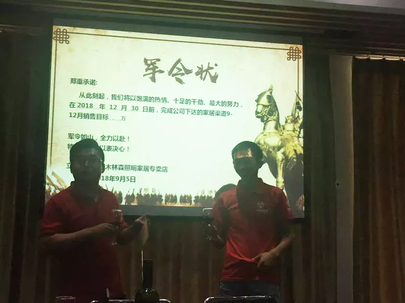 此次培訓為專賣店明確了木林森照明發(fā)展的目標方向及為門店經(jīng)營思路帶來了豐富的實戰(zhàn)經(jīng)驗,讓專賣店在以后的經(jīng)營中更有信心。在木林森照明家居渠道重慶區(qū)域經(jīng)理李華山的組織下,重慶區(qū)域12位經(jīng)銷商信心滿滿,對公司下達的9-12月業(yè)績規(guī)劃立下軍令狀。