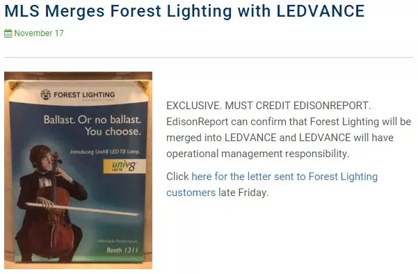 海外媒體對Forest Lighting將整合至LEDVANCE的報道