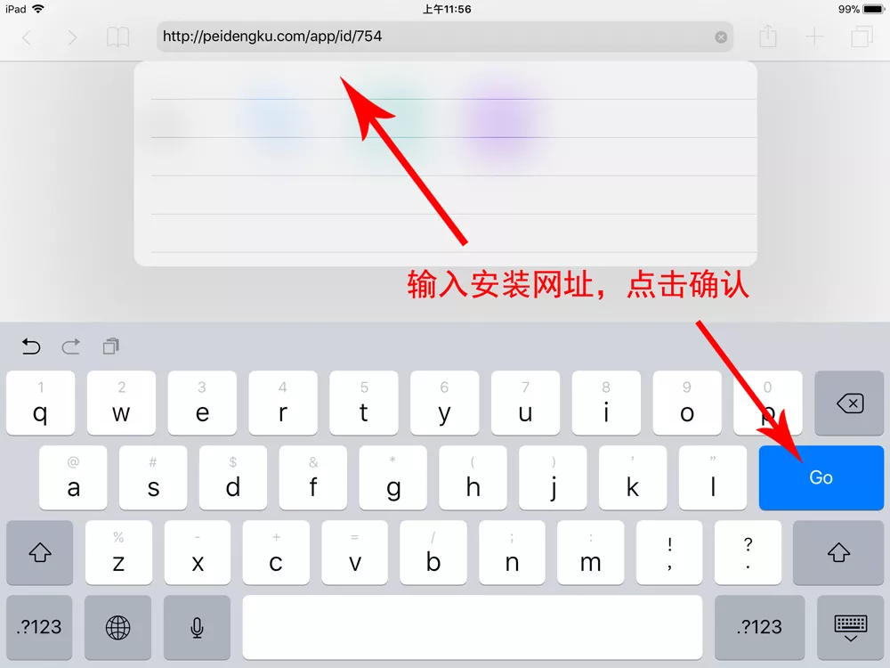 2、打開瀏覽器,iPad要打開自帶瀏覽器Safari,安卓系統(tǒng)不限定瀏覽器;