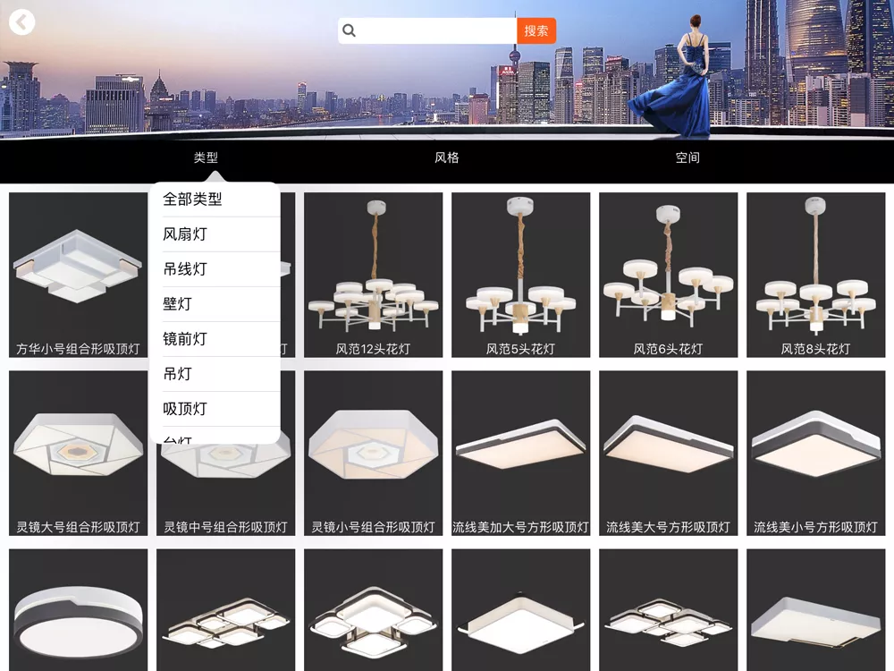 配燈中心產(chǎn)品菜單新增分類篩選功能,產(chǎn)品菜單圖片和場(chǎng)景菜單圖片增加至3列展示,更多展示選項(xiàng),提高配燈效率。