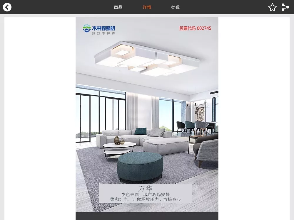 產(chǎn)品中心首頁(yè)直接展示全部產(chǎn)品,燈具“類型”、“風(fēng)格”、“空間”分類篩選,快速尋找目標(biāo)產(chǎn)品。主推產(chǎn)品新增詳情介紹頁(yè)面,產(chǎn)品設(shè)計(jì)理念、參數(shù)、賣點(diǎn)、情景搭配一目了然,助力終端導(dǎo)購(gòu)銷售。