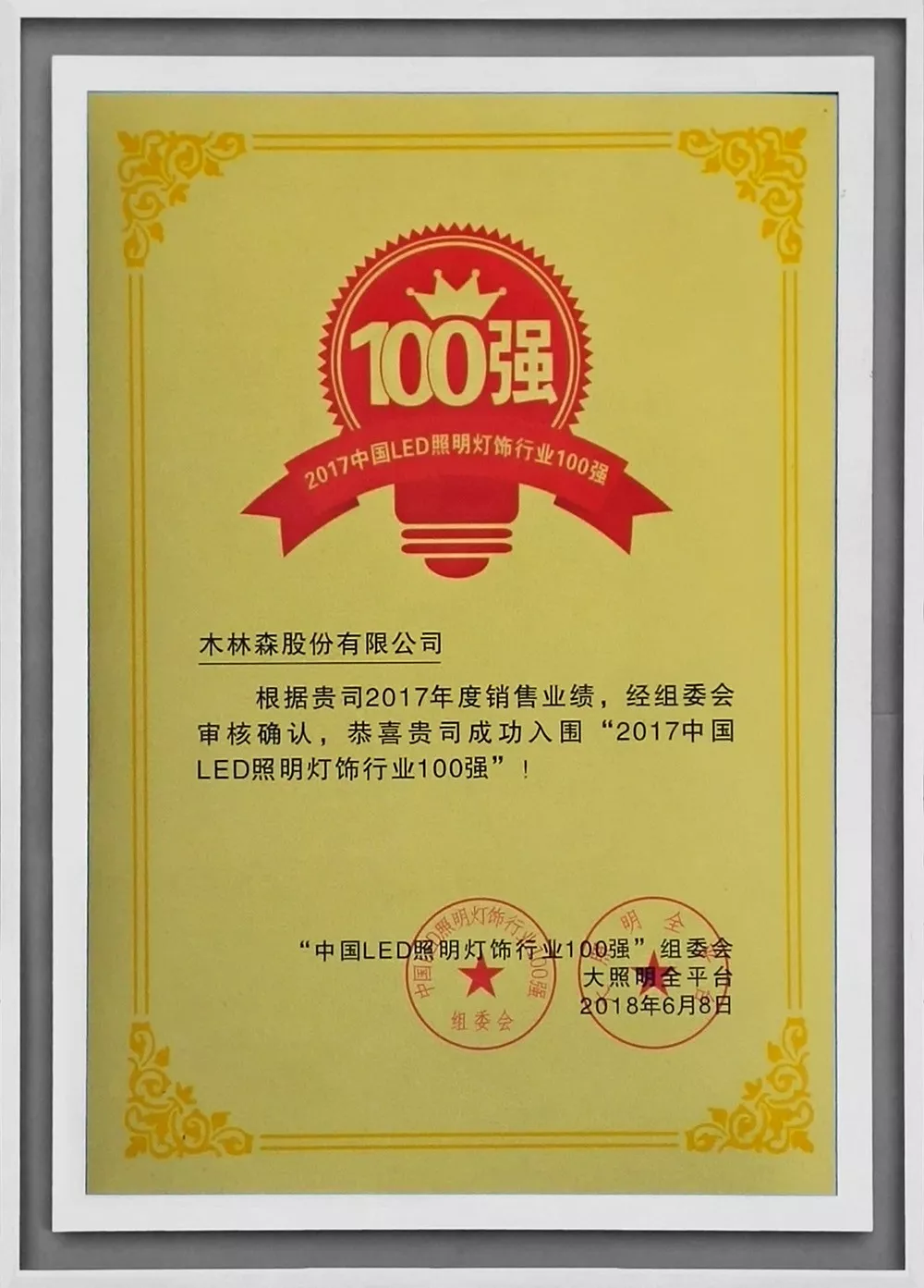 2017中國LED照明燈飾行業(yè)100強| 木林森第2名